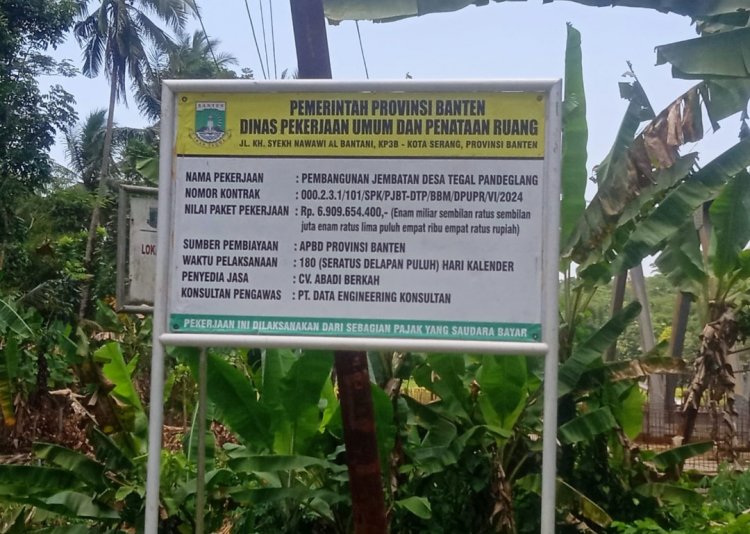 Banselpos.com, Pandeglang-Banten | Pembangunan Jembatan yang berlokasi di Desa Tegal Kecamatan Cikedal Kabupaten Pandeglang Provinsi Banten, Dengan Nilai anggaran Rp.6.909.654.400,00.- nomor kontrak, No.00.2.3.1/101/SPK/PJBT-DTP/BBM/DPUPR/VI/2024. Yang dikerjakan oleh CV. Abadi Sumber, Dana APBD Provinsi Banten dengan pihak konsultan PT. Data Engineering Konsultan diduga dalam pengerjaannya Melalaikan APD (Alat Pelindung Diri) dan disinyalir tak sesuai spek.