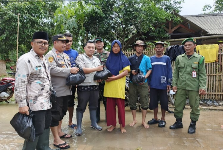 Kapolsek Saketi dan Camat Saketi Berikan Bantuan Korban Banjir Didesa Langensari