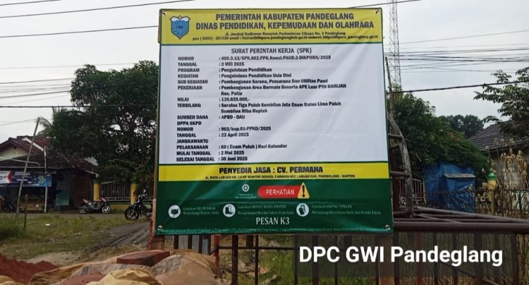Program Pengelolaan Pendidikan untuk sarana pendidikan khusus untuk usia dini pada sekolah PAUD melalui Dinas Pendidikan, Pemuda dan olahraga yang biayai dari APBD Kabupaten Pandeglang tahun 2025 sebesar Rp. 130 jutaan lebih, dengan team pelaksana atau penyedia jasa CV. PERMANA diduga pembangunan tersebut dikerjakan Asal Jadi (ASJAD).