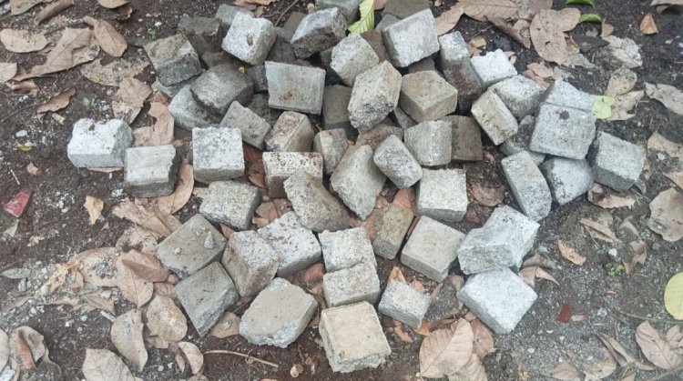 Kami melihat juga ada bangunan jalan Paving Block yang tidak jelas ukuranya dengan menggunakan paving Block yang tidak bermutu atau tidak sesuai SNI, karena terlihat retak dan patah.