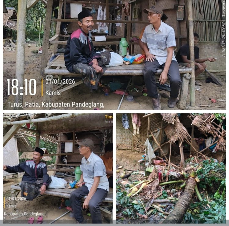 "Dikarenakan angin kencang di wilayah Kampung Kikasam Desa Turus Kecamatan Patia tersebut sehingga mengakibatkan pohon kelapa tumbang dan Pohon Karet Tumbang menimpa 1 unit rumah, milik Ust. Supyadi rusak pada bagian atap dan dapur tertimpa pohon," kata Supratman, Kamis (01/01/2025).