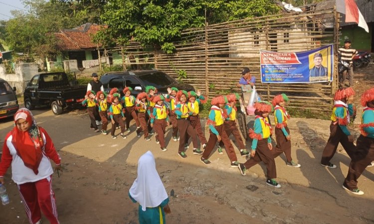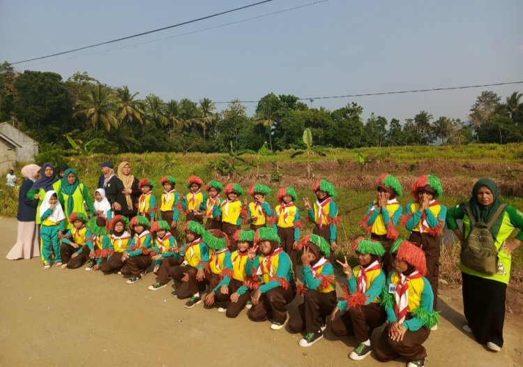 Pandeglang, Banten - Bansel Pos | Madrasah Ibtidaiyah Swasta (MIS) Mathla'ul Anwar Pade Desa Parumasan Kecamatan Cipeucang Kabupaten Pandeglang, aktif menggelar latihan baris-berbaris setiap sore dalam rangka menyambut Hari Ulang Tahun Republik Indonesia (HUT RI) ke-79. Kegiatan ini diikuti oleh murid kelas 4 hingga kelas 6 dan dipimpin langsung oleh kepala madrasah, Ika Paduwika.