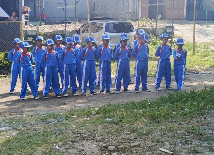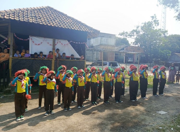 Walau Ruang Kelas kurang dan sapras minim Siswa-Siswi MIS Mathla'ul Anwar Pade semangat latihan Baris Berbaris menyambut HUT RI ke 79,